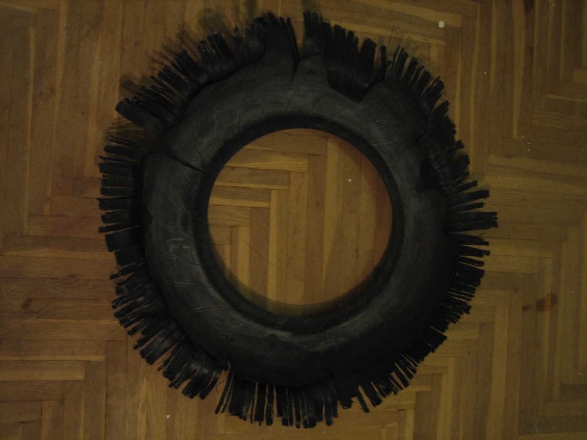 [nalezený objekt, explodovaná pneumatika]